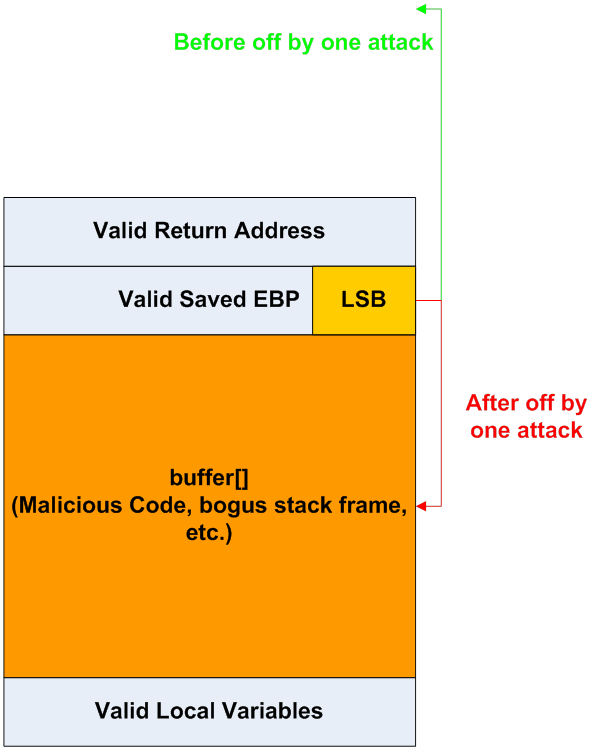 }buffer[] is overflowed with keyboard input, it will overwrite szFilename:szFileName point anywhere he wantsargv[1]; this means he can pass in a file name on the command line!C:\autoexec.bat or some other protected system file name on the command line; if this program is a system utility that runs with admin privileges, the system file can be overwrittenbuffer[] received malicious code, plus a bogus stack frame, from the keyboard, as hex stringsbuffer[]