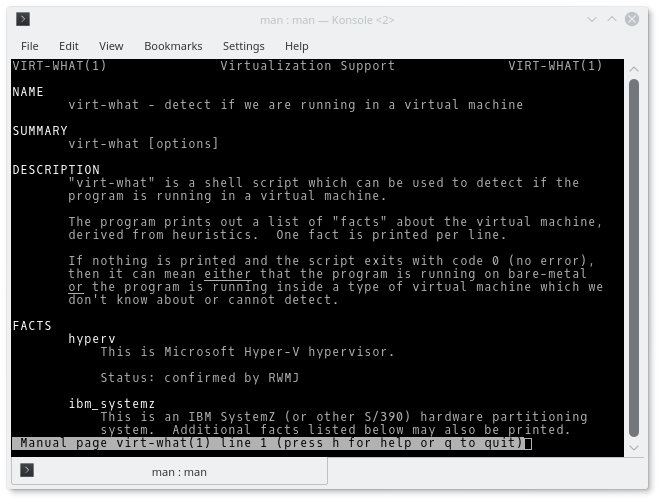 fork() for example – we don’t want to fork bomb our host machinevirt-what, which will determine if you are in a VM or not